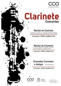 A Classe de Clarinete, do Professor Nuno Madureira, apresenta, nos próximos dias, mais um Recitais e um Concerto: Dia 11 de junho de 2019, às 21h00, no Auditório do CCA, terá lugar o Recital de alunos do Supletivo: Hugo Pinto, Maria Inês Sousa e José...
