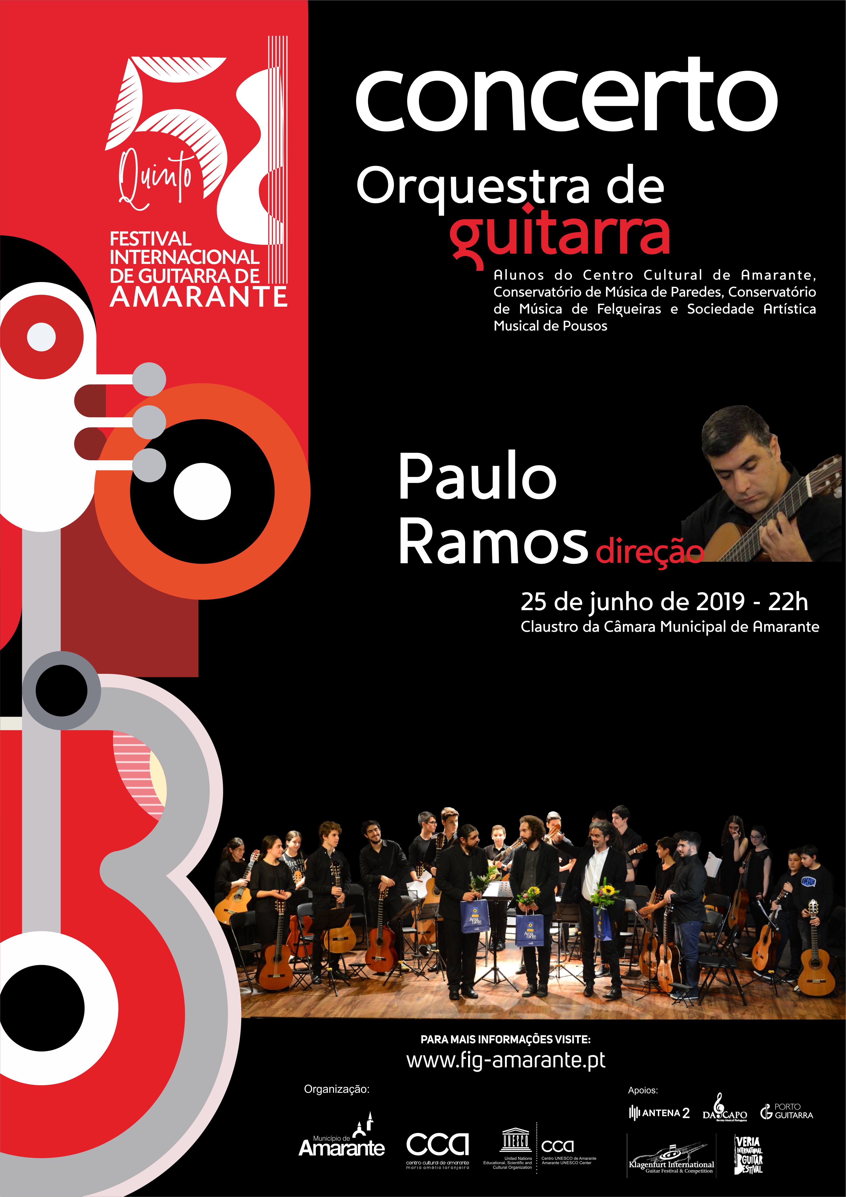 Dias 23, 24 e 25 de junho, o Maestro Paulo Ramos dirige o Estágio da Orquestra de Guitarras, formada por alunos do Centro Cultural de Amarante, do Conservatório de Música de Paredes, Conservatório de Música de Felgueiras e Sociedade Artística Musical de Pousos .